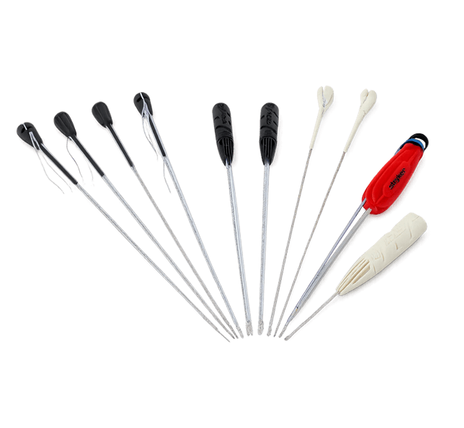 A plataforma de âncora de sutura Iconix oferece uma variedade de opções de guia de broca (2,3 mm e 1,4 mm), incluindo opções de kit reto curto, reto, 12 graus, inclinação de 12 graus, inclinação de 25 graus, inclinação de 25 graus e kit descartável.